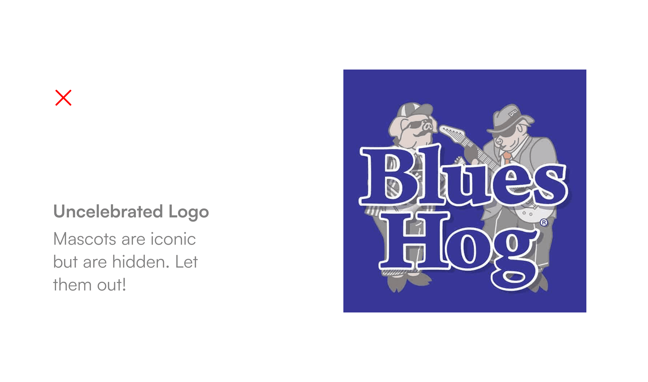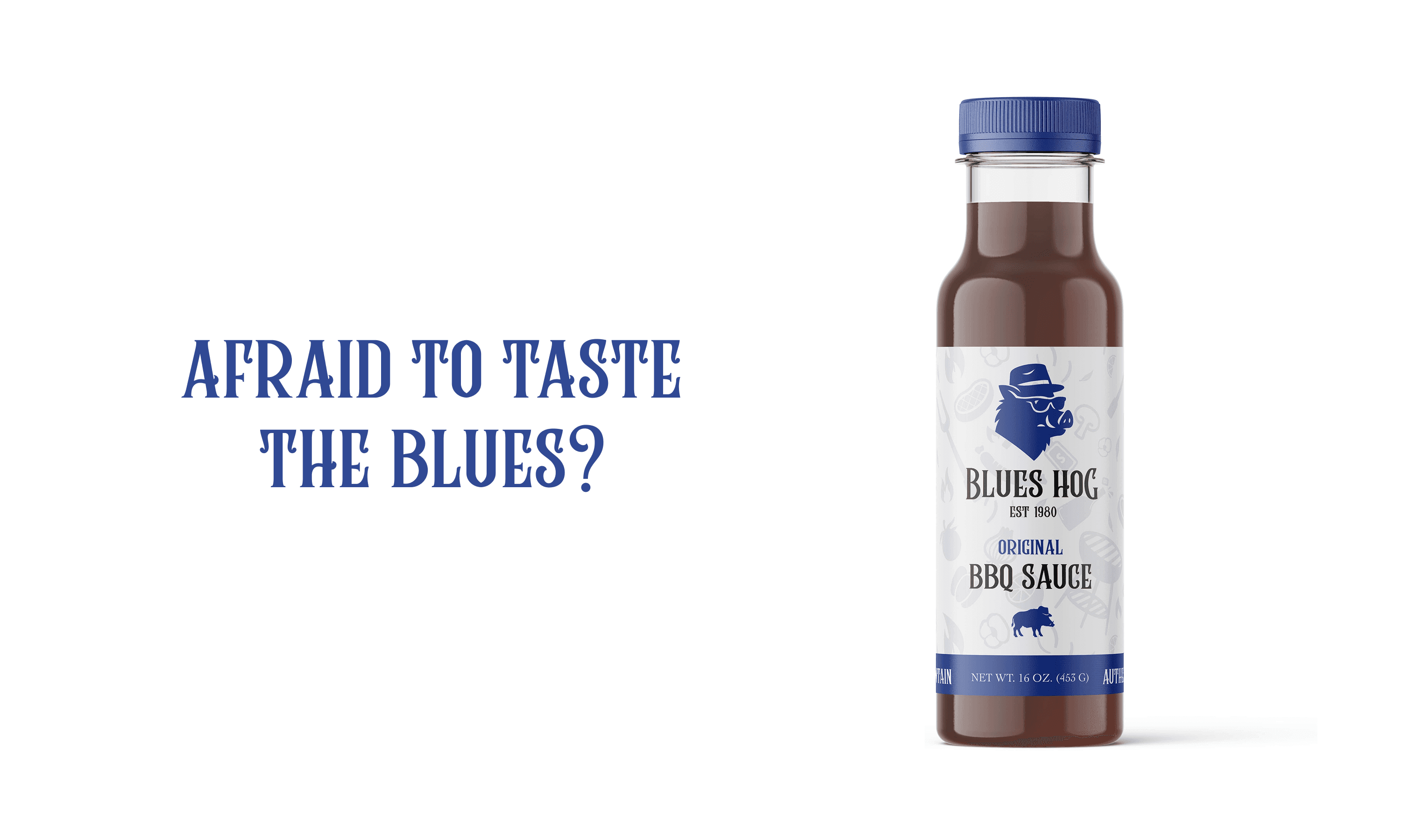 Blues Hog is a BBQ sauce brand with roots in authentic, competition-level barbecue culture, full of Memphis charm and jazz. But its branding doesn't seem to reflect that story.