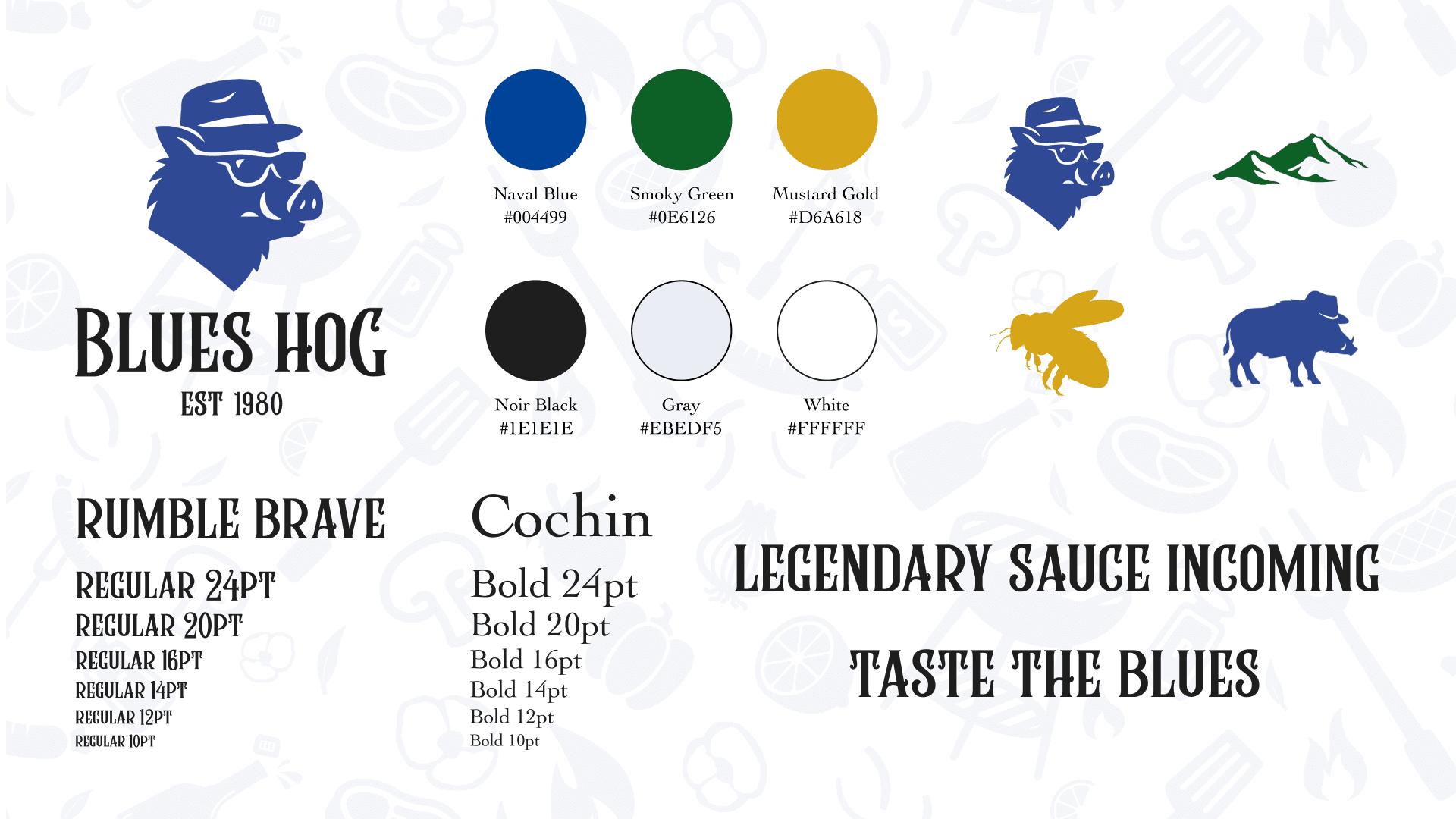 While Blues Hog is still a popular brand in the culinary landscape, their branding could be updated to further push their branding to the next level. I first looked at what parts of the brand should be celebrated and what was holding it back.