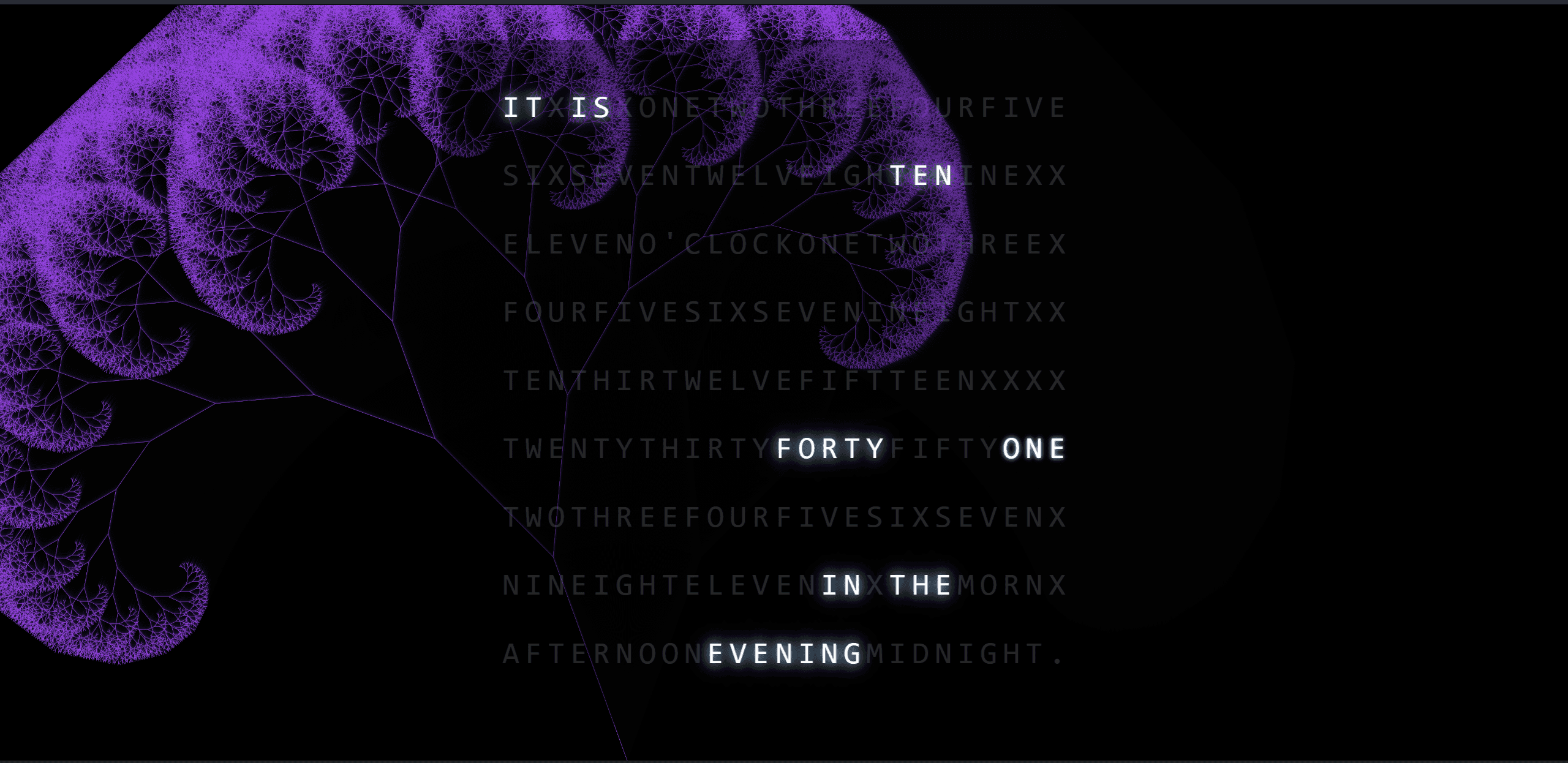 Fractal Word Clock in EST / HTML, CSS, JS, Gemini